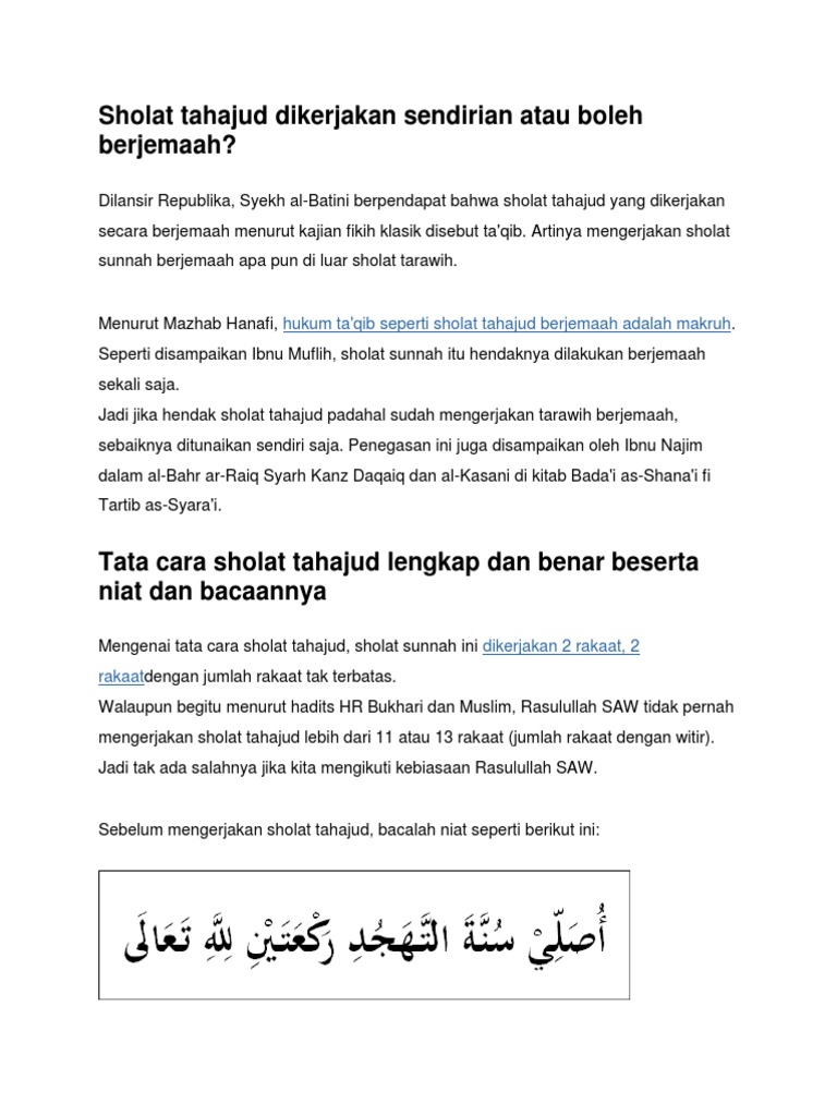 Cara Solat Tahajjud Yang Betul Pdf Document