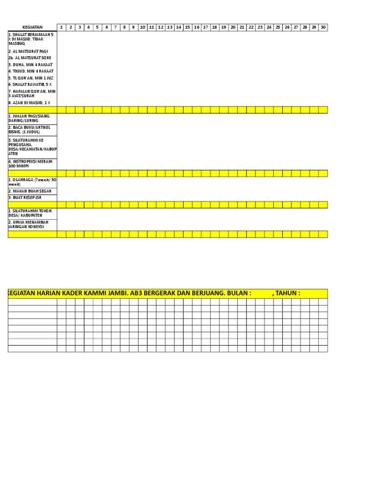 Contoh Tabel Amal Yaumi Akhwat