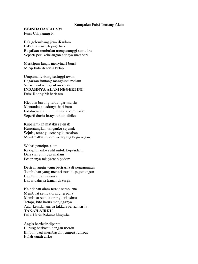 Tuliskan Contoh Puisi Tentang Keindahan Alam Indonesiaplis Jawab Aku Buru Buru Brainly Co Id