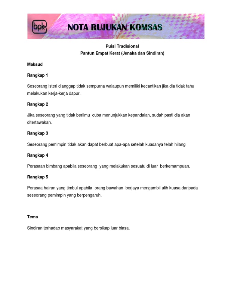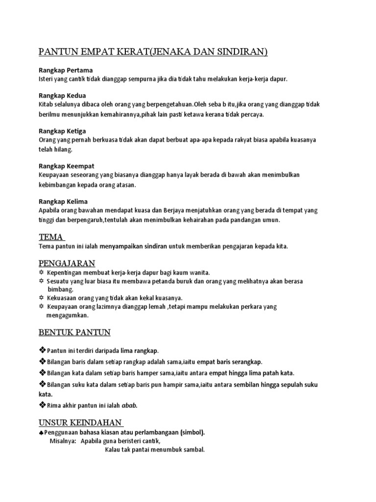 Pantun Empat Kerat Jenaka Dan Sindiran