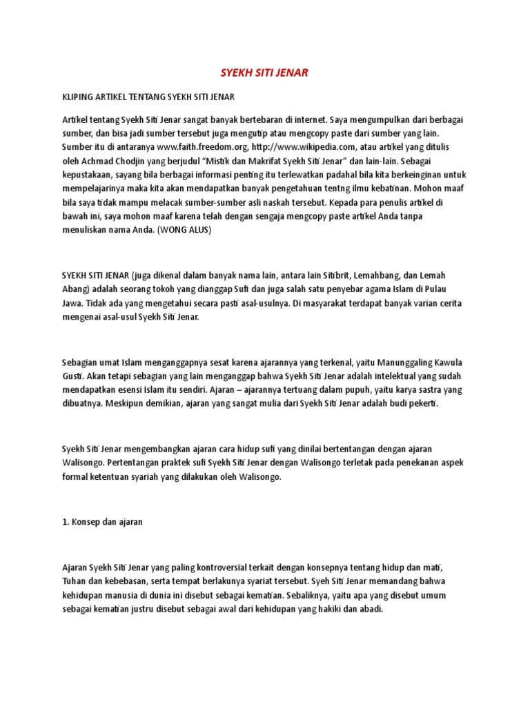 Pertentangan praktik sufi syekh siti jenar dengan walisongo terletak pada penekanan aspek formal ketentuan syariah. Rahasia orang yang selalu dikejar rezeki lakukan 5 hal sederhana ini. Ajaran syekh siti jenar yang paling kontroversial terkait dengan konsepnya tentang hidup dan mati tuhan dan kebebasan serta tempat berlakunya syariat tersebut syeh siti jenar memandang bahwa kehidupan manusia di dunia ini disebut sebagai kematian.