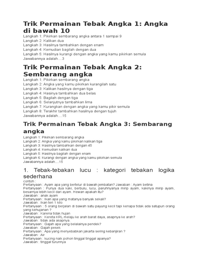 Teka Teki Angka Teka Teki Lengkap