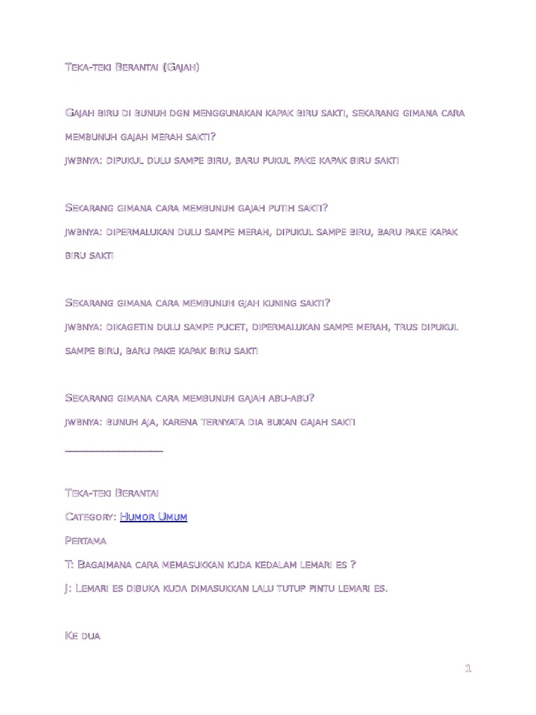 Posts about lucu teka teki written by tukang cerita. Teka teki lawak lucu senang susah dan sebagainya. Jika anda cinta akan permainan tradisional uji minda seperti teka silang kata ataupun anda adalah raja teka teki logik.