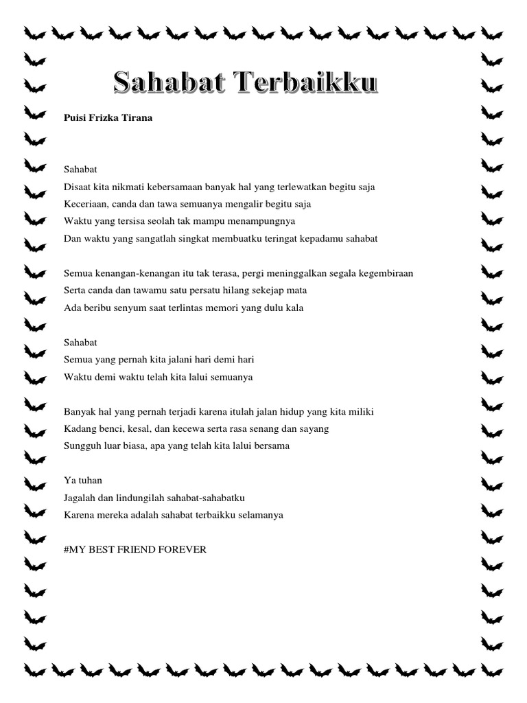 Boleh copy paste tapi jangan lupa cantumkan sumber. Sahabat adalah teman terdekat dengan kita walau jaraknya jauh tetapi dengan sering komunikasi baik menggunakan telepon sms bbm wa surat email dan lain sebagainya kita bisa menjadi dekat. Puisi sahabat hallo sobat santaidamai gimana kabarnya untuk hari ini.