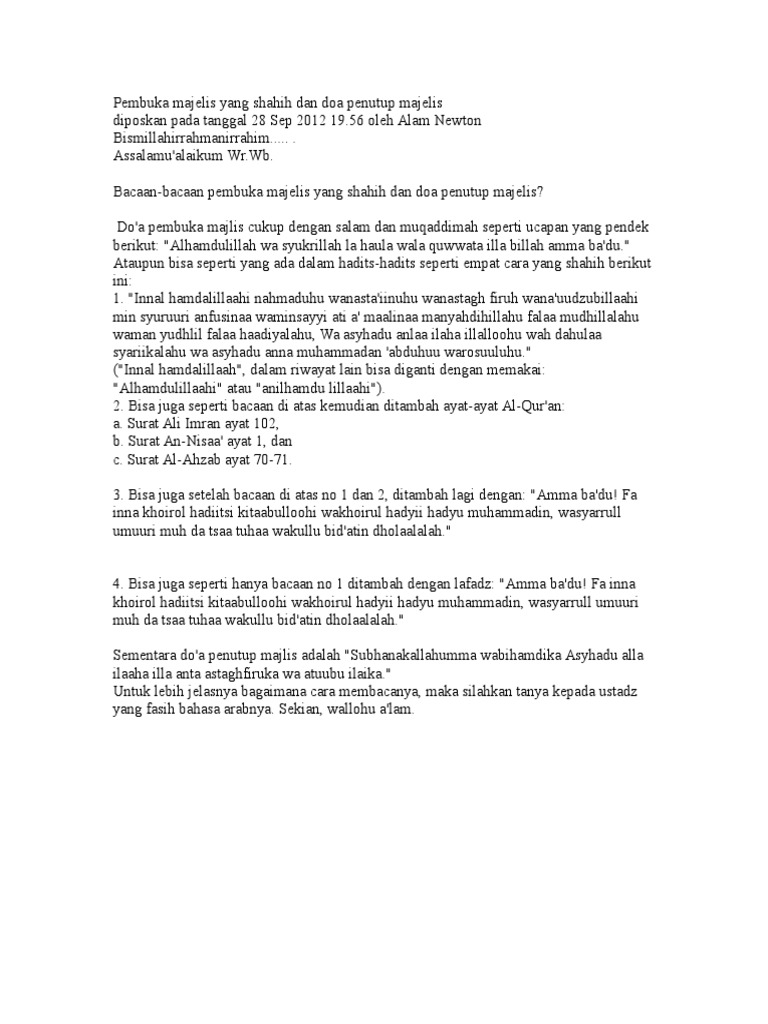 Doa Pembuka Dan Penutup Acara Arab Latin Dan Terjemah