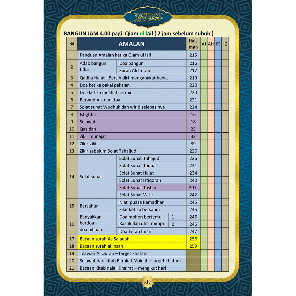 Disertai dengan dalil dan mutiara salaf disetiap daftar amalan. Kalender hijria pengingat amalan perioder tertentu amalan harian. 1 3 amalan ketiga shalat berjamaah di mesjid terutama subuh dan isya 1 4 amalan keempat shalat sunnah dhuha.