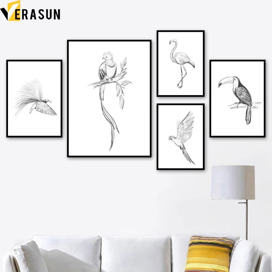Flamingo Burung Beo Burung Toucan Dinding Seni Lukisan Kanvas Nordic Poster Dan Cetakan Hitam Putih Dinding Gambar Untuk Dekorasi Ruang Tamu Painting Calligraphy Aliexpress