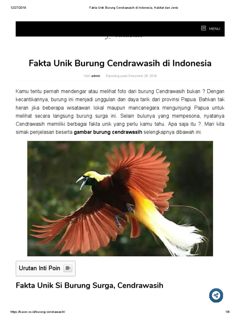 Jenis makanan yang mereka makan adalah buah buahan serangga dan juga biji bijian sama dengan jenis burung kacer dan burung lainnya. Burung cendrawasih hidup di hutan dataran rendah tropis. Burung cendrawasih burung cenderawasih adalah salah satu burung yang sangat indah saking indahnya burung ini dijuluki burung dari surga bird of paradise dibalik keindahan burung cenderawasih ternyata burung ini termasuk kedalam burung yang langka dan dilindungi.