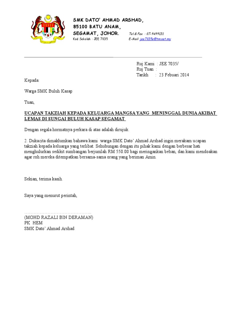Contoh Surat Percakapan Tempat Kerja Untuk Kematian Keluarga 2020 Sumber Manusia