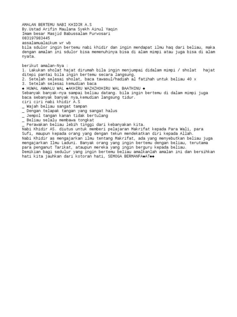 Contoh Soal Dan Contoh Pidato Lengkap Fadhilah Doa Nabi Khidir
