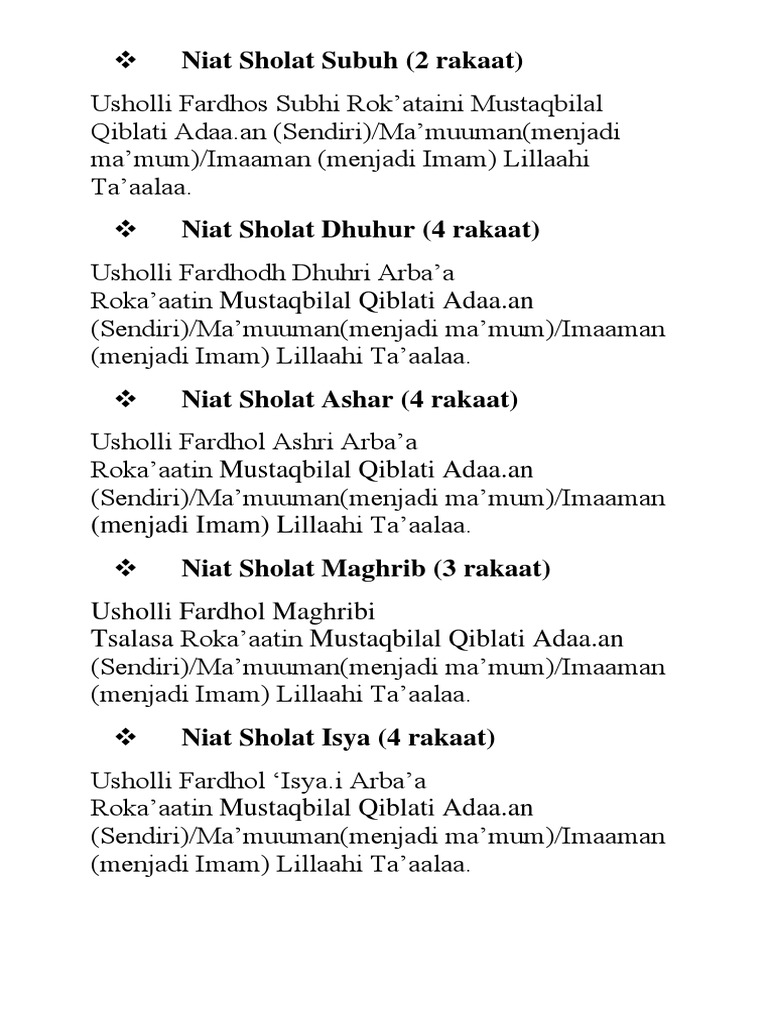 Bacaan Niat Sholat 5 Waktu Dan Tata Carasholat