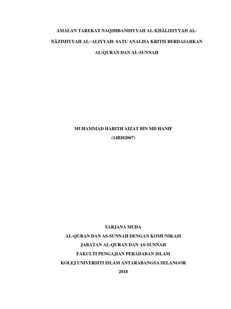 Amalan Tarekat Naqshbandiyyah Al Khalidiyyah Al Nazimiyyah Al Aliyyah Satu Analisa Kritis Berdasarkan Al Quran Dan Al Sunnah