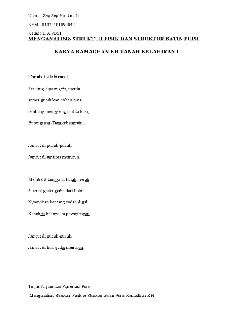 Menganalisis Puisi Tanah Kelahiran I Ramadhan Kh