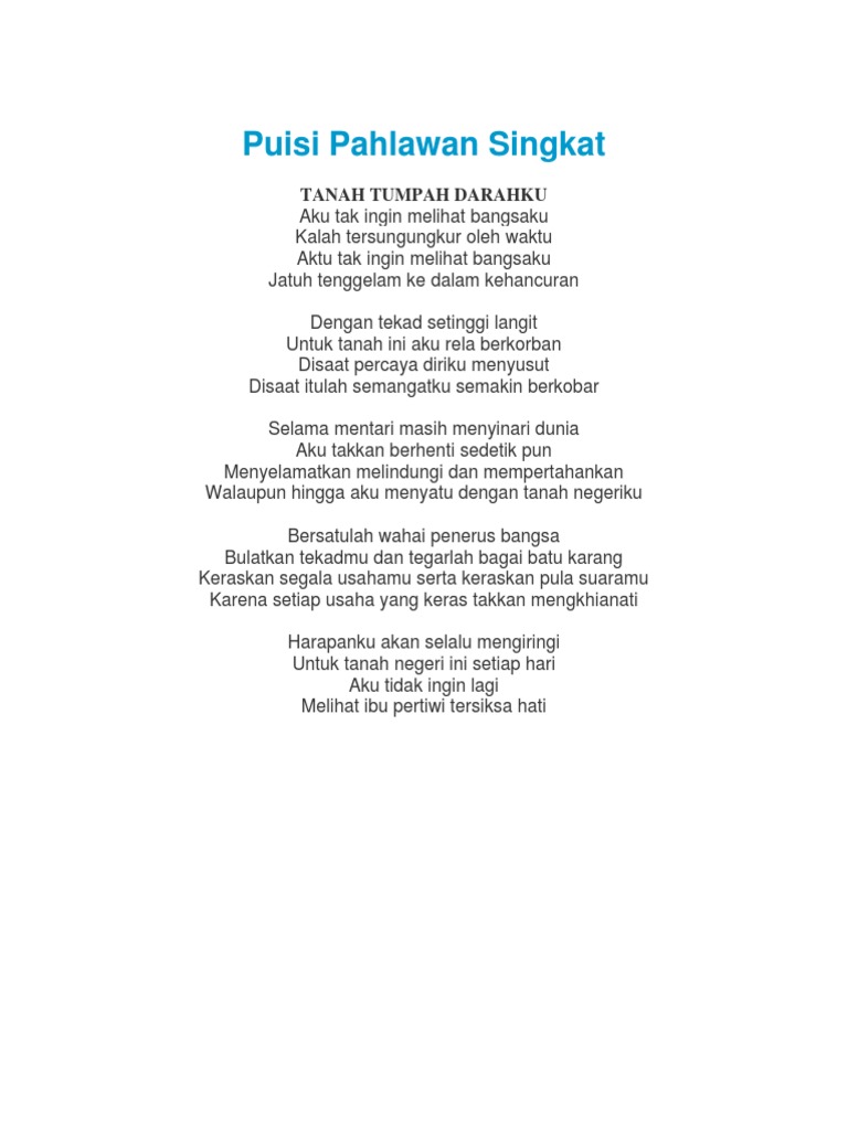 Buat Lah Puisi Yang Berjudul Pahlawan Singkat Dan Jelas Brainly Co Id