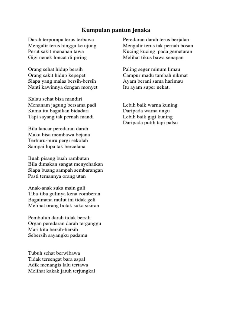 Pantun jenaka pantun ini mungkin sudah tidak asing lagi ditelinga kita apalagi kalo kamu masih duduk dibangku sekolah pantun jenaka sangat populer dibandingkan pantun lain untuk anak sd smp sma smk bahkan perguruan tinggi khususnya biasanya kalian disuruh membuat pantun jenis ini karena pantun ini dapat dijadikan sebagai permainan lucu lucuan becandaan bersama teman ataupun sahabat. Ini contoh pantun jenaka untuk anak sekolah dasar. Anak anak memiliki pemikiran yang sederhana sehingga hidupnya penuh dengan suka cita.