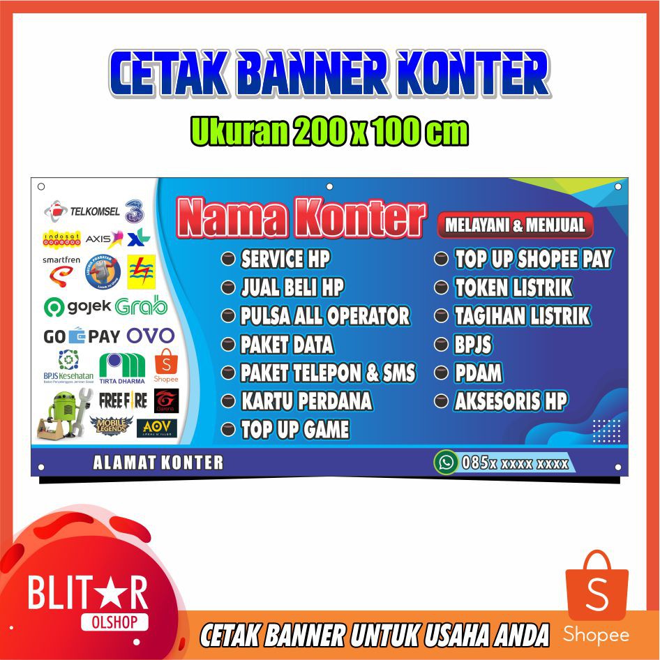 Cetak Banner Konter Hp Pulsa Ukuran 200x100 Cm Shopee Indonesia