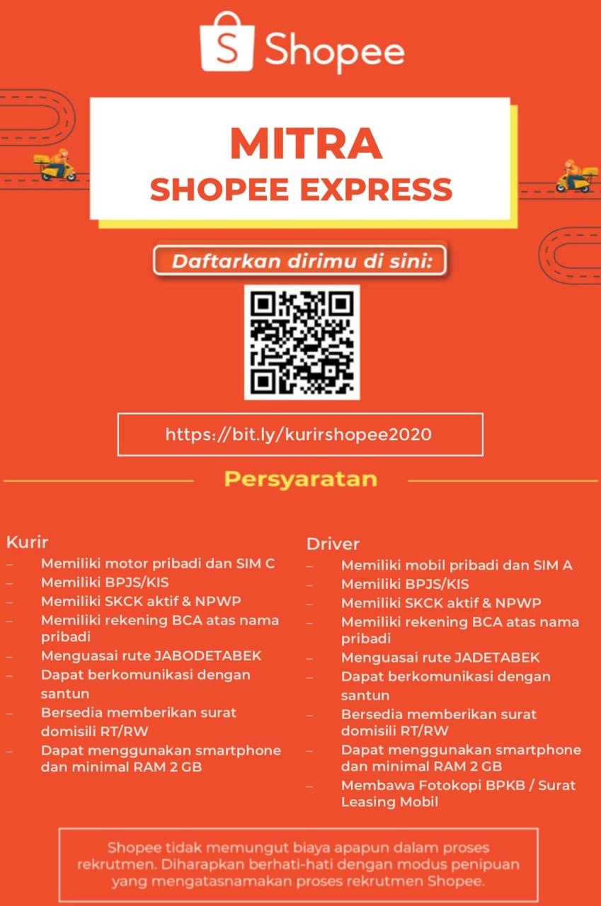 Lowongan kerja kurir shopee express via link 2020 by admin web. Mitra shopee express 1. Shopee xpress operates seven days a week from 9am 6pm excluding selected holidays.
