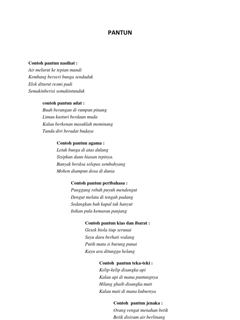 Nasehat pantun teka teki contoh pantun jenaka. Tujuan dari puisi ini umumnya untuk menghibur dan mengenal satu sama lain. Jenis pantun ini biasanya dibuat untuk menghibur. Dihalaman ini akan dibahas tentang contoh pantun nasehat baik pantun jenaka pantun cinta pantun lucu pantun agama atau pantun teka teki akan tetapi hanya beberapa orang yang mahir dalam membuat pantun adapun yang lain kualitasnya masih di bilang cukup.