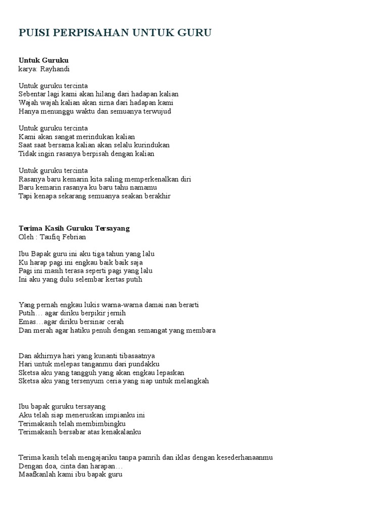 Puisi Perpisahan Untuk Guru Docx