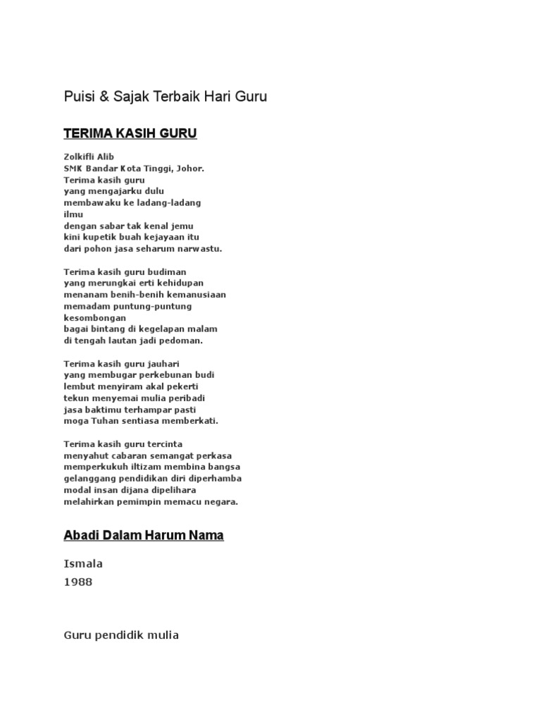 Terima Kasih Puisi Guruku Tercinta Recipes For Cookies