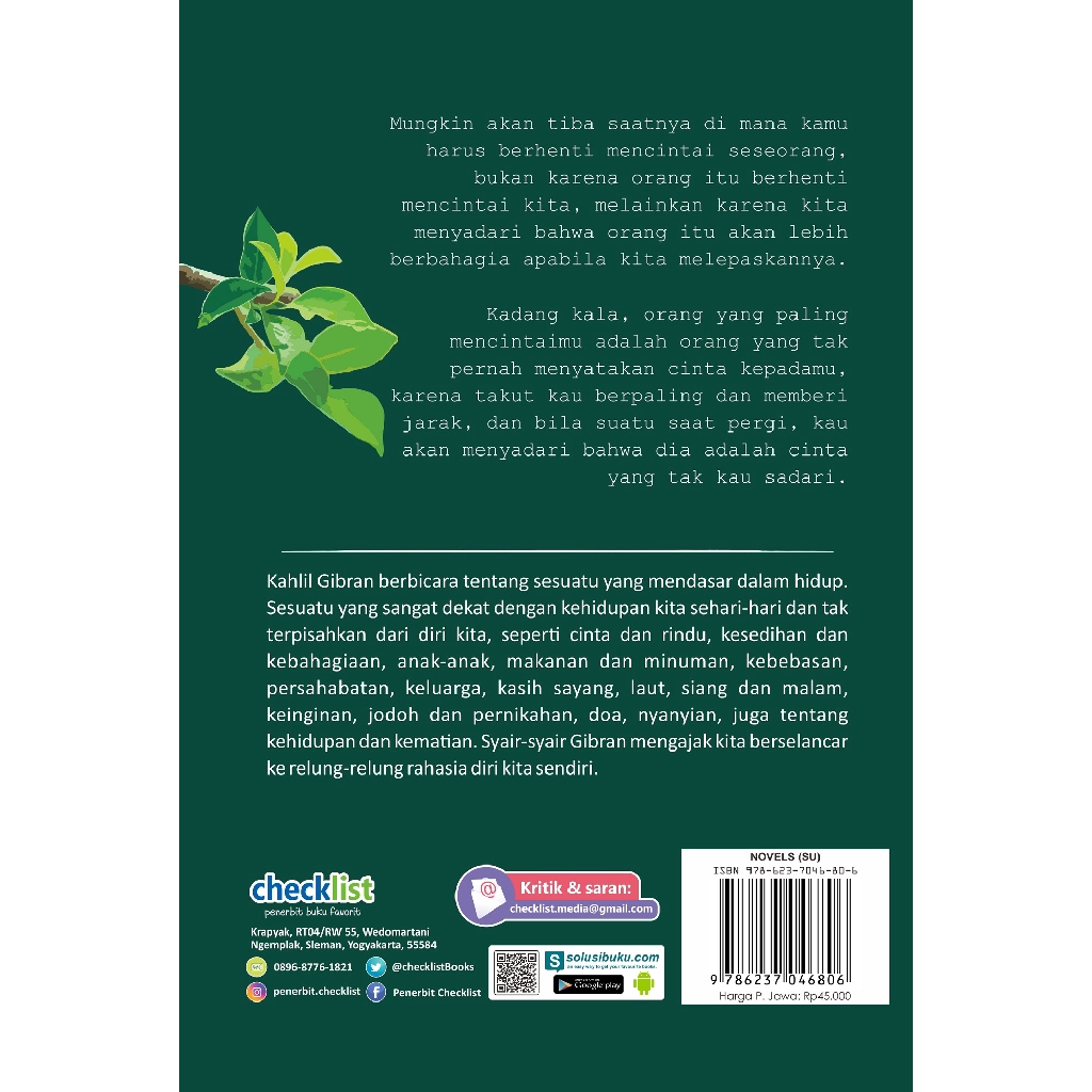 Buku Sastra Kahlil Gibran Aku Bicara Perihal Cinta Checklist Shopee Indonesia