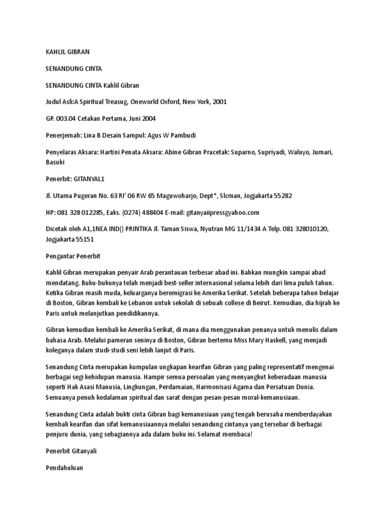 Senandung Cinta By Kahlil Gibran Doc