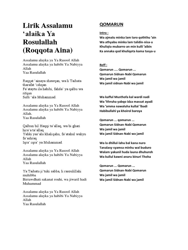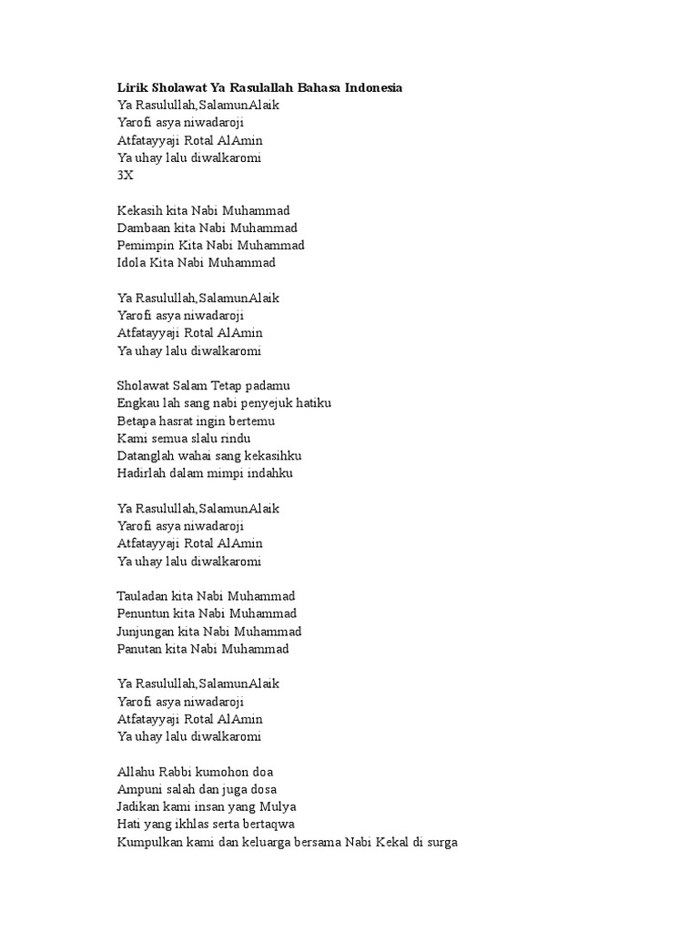 Sholawat nabi lirik indonesia. Wa idzhaari sya aairihi alaa thariqati. Gudangnya teks sholawat nabi arab latin dan terjemahannya. Lagu sholawat populer lirik lagu ya nabi salam alaika berkumandangkan do a agar kehidupan kita selalu di beri kemudahan dan kelancaran berdzikir bertaubat jika engkau selagi hidup untuk bekal di akhir nanti.
