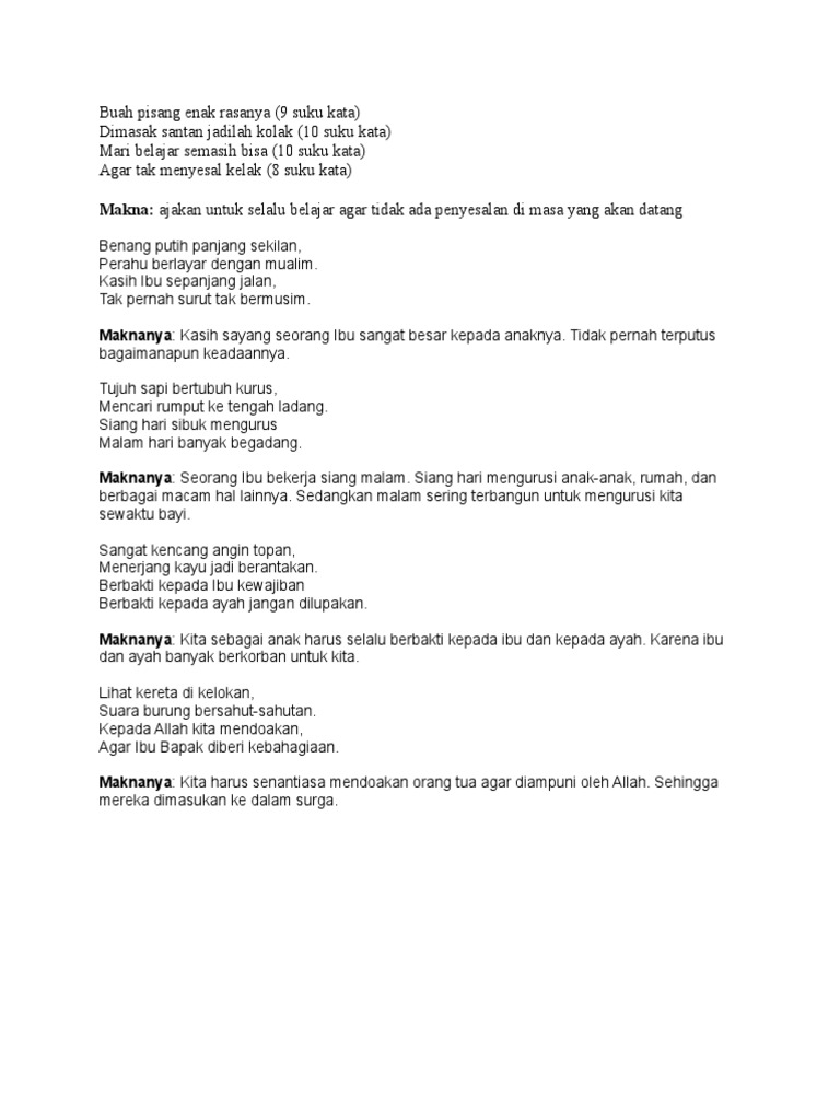 Islam untuk beribadah sesuai dengan agamanya. Di indonesia kristen yang diakui adalah kristen protestan dan kristen katholik. Biasanya pantun pantun tersebut sering dijumpai dan ditemui ketika seseorang itu belajar saat duduk di bangku smp maupun sma.