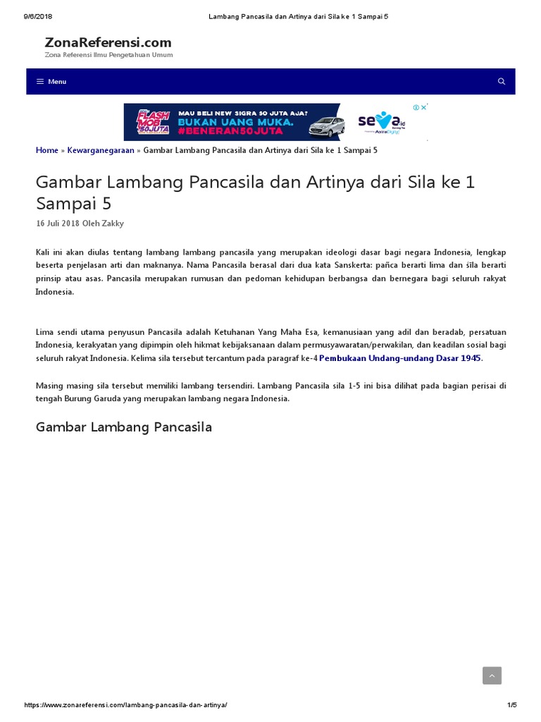 Lambang Pancasila Dan Artinya Dari Sila Ke 1 Sampai 5