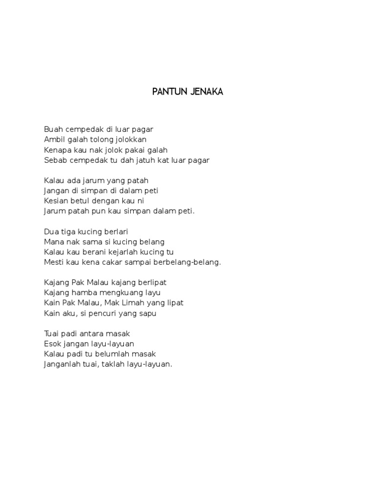 Contoh pantun jenaka nasehat teka teki pendidikan terbaru. 101 contoh pantun nasehat jenaka pendidikan agama teka teki beserta jawabannya ilmiyatin 05 17 2018 home no comments kebanyakan orang adalah suka terhadapa pantun baik pantun jenaka pantun nasehat pantun cinta pantun lucu pantun agama atau pantun teka teki akan tetapi hanya beberapa orang yang mahir dalam membuat pantun adapun yang.