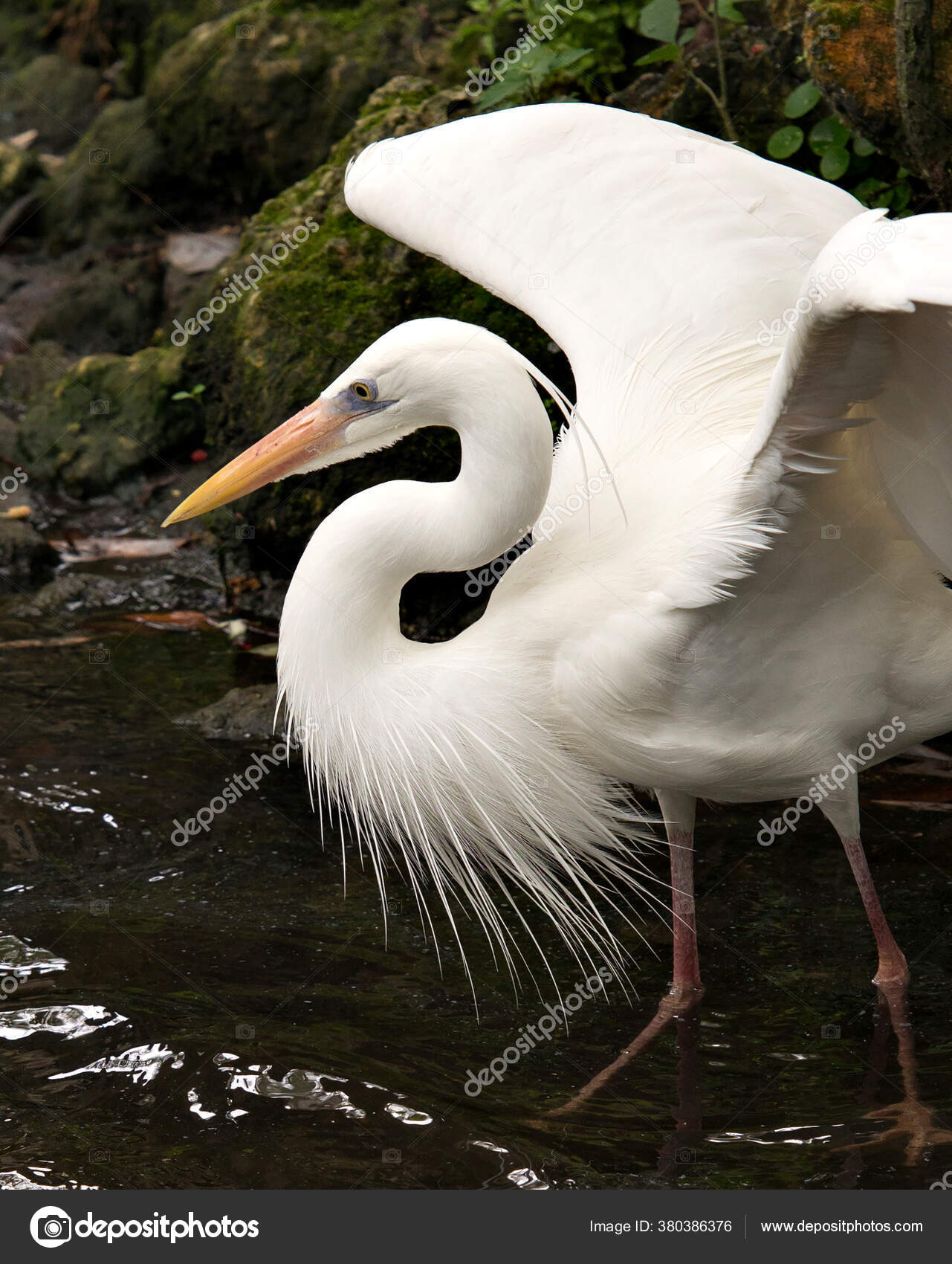 Burung Heron Putih Close Profile View Dengan Sayap Yang Menyebar Stok Foto C Rejeanaline 380386376