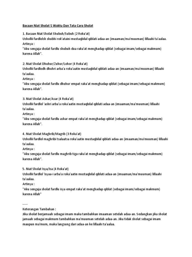 Niat shalat sebagai imam dan makmum pembahasan mengenai shalat wajib lima waktu di dalam islam ialah salah satu ibadah yg sudah diwajibkan teruntuk setiap muslim diseluruh dunia baik itu muslim berjenis kelamin laki laki maupun muslimah berjenis kelamin perempuan karena didalam hukum mengerjakan shalat fardhu di ajaran islam sendiri ialah fardhu ain yg mempunyai artian sdh diwajibkan dan harus dilakukan oleh tiap tiap muslim yg sudah termasuk kedalam syarat wajib mengerjakan. Bacaan niat shalat isya sebagai makmum tetapi jika melaksanakan secara munfarid atau sendiri dapat membaca doa yang c. Niat sholat isya niat sholat subuh niat sholat ashar niat sholat maghrib nah demikianlah pemaparan tentang lafal dan bacaan niat sholat dzuhur lengkap untuk berjamaah sebagai makmum atau imam serta untuk sholat sendirian.