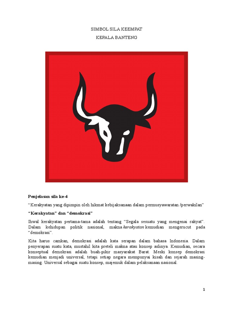 Makna lambang sila keempat kepala banteng sila yang keempat ini juga merupakan salah satu makna yang ada di dalam pancasila yang bunyi nya kerakyatan yang di pimpin oleh hikmat bebijaksanaan dalam permusyawaratan indonesia. Lambang sila keempat kepala banteng tapi gambarnya lambang pdi p. Banteng adalah hewan yang digunakan untuk melambangkan sila keempat pancasila.