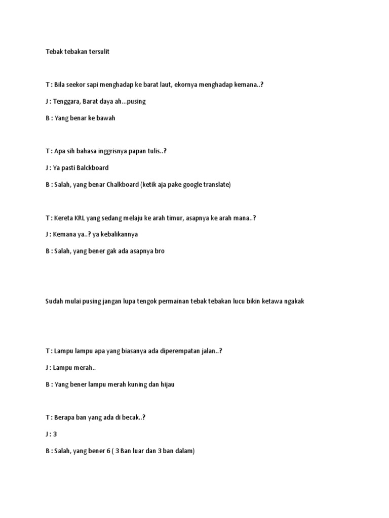 Teka Teki Lucu Penuh Jebakan Teka Teki Lengkap