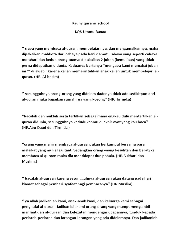 Kata kata mutiara penghafal al quran docx. Anak mengikuti contoh orang tua. Al quran merupakan kitab suci yang berisikan segala pedoman hidup bagi umat muslim untuk menjalankan ibadah kepada tuhannya dan menjalankan kehidupan sehari.