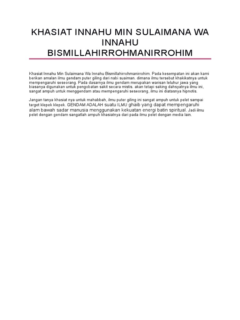 Amalan pengasihan nabi sulaiman. Halo sahabat kang dian jumpa lagi dengan saya pengasuh dian mardiana blog yang kali ini akan mengupas habis doa ilmu pengasihan nabi sulaiman menaklukan hati. Aura nabi sulaiman yang begitu kuat membuatnya nampak berwibawa ditakuti disegani dan senantiasa dihormati dimanapun berada. Kekayaannya pun luar biasa banyak dan istananya juga sangat megah tetapi tak membuatnya silau sedikit pun dan melupakan bahwa semuanya harta yang dimilikinya adalah titipan.