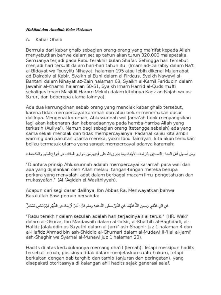 Bacaan Rebo Wekasan Sholat Tolak Bala Docx