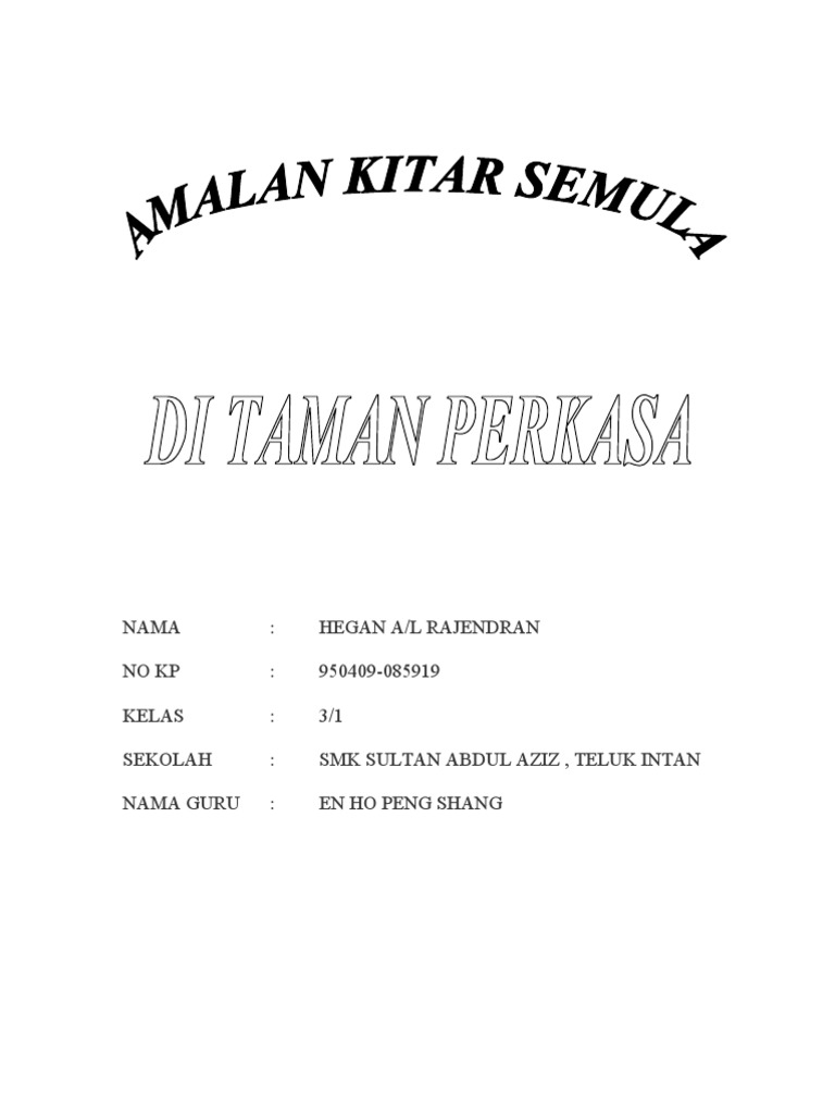 Amalan kitar semula yang dijalankan oleh penduduk taman saya ialah menjual bahan bahan kitar semula ini di pekan batang kali. Kajian amalan kitar semula. Amalan kitar semula barang barang terpakai diperkenalkan dalam usaha untuk menjimatkan penggunaan sumber memastikan alam sekitar sentiasa bersih mengelakkan pencemaran dan mengurangkan pembaziran.
