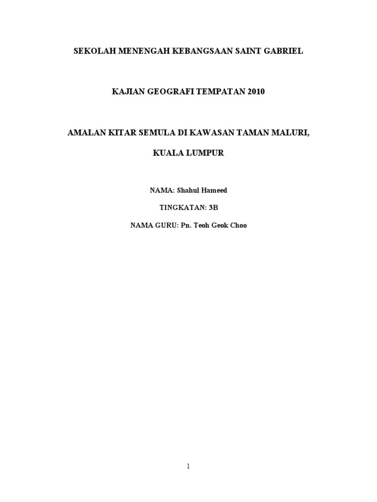 Folio geografi amalan kitar semula. Geografi tingkatan 3 bab 11 kitar semula. Kebanyakan daripada penduduk taman desa ulu yam bharu akan membawa sendiri bahan tersebut ke pusat memproses bahan kitar semula. Panduan buat pelajar tingkatan 3 yang ingin menyiapkan tugas kerja kursus geografi pt3 dimana tajuk tugasan yang diberikan berjudul kajian guna tanah di kawasan tempat tinggal atau sekolah anda.
