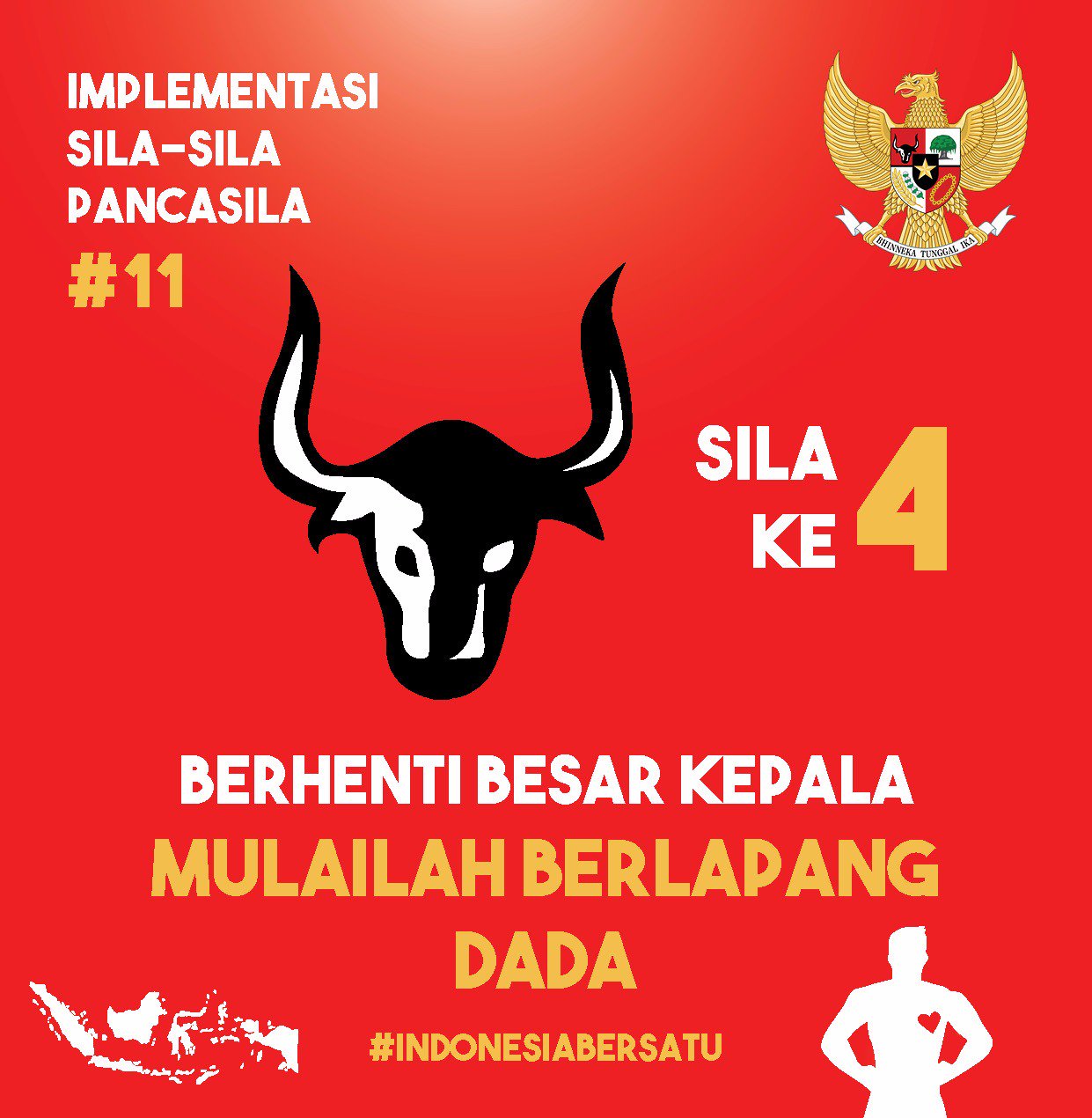 Sila keempat pancasila berbunyi kerakyatan yang dipimpin oleh hikmat kebijaksanaan dalam permusyawaratan perwakilan. Sebagai warga negara dan warga masyarakat setiap manusia indonesia mempunyai kedudukan hak dan kewajiban yang sama. Lambang yang menjadi identitas pancasila untuk sila ke 4 adalah kepala banteng.