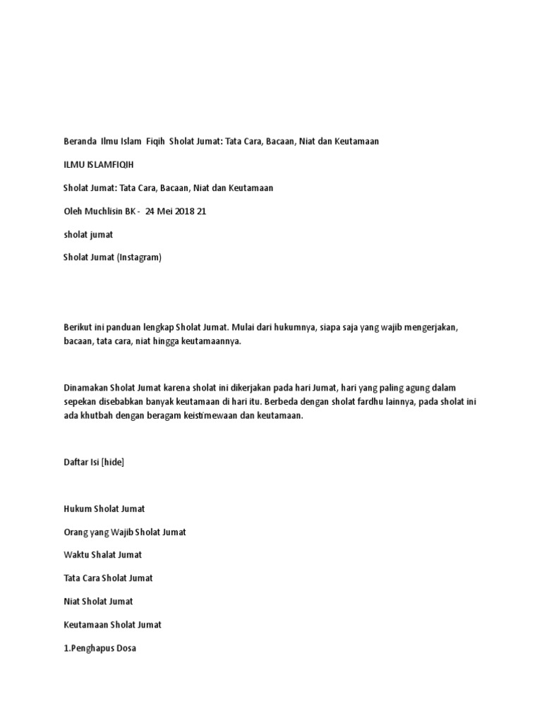 Niat Sholat Jumat Sebagai Makmum Youtube